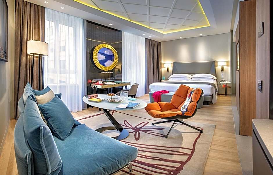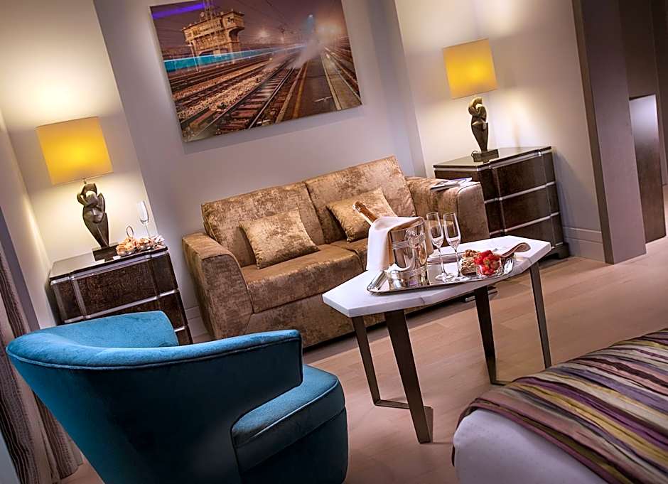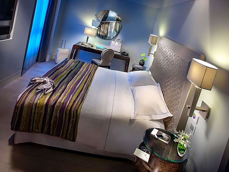 This stylish nonsmoking room features a 46” full HD interactive TV and RGB lights, iPod dock, a mini-bar, and seating area. The private bathroom includes a marble bath with chromotherapy and a mirror with 12'' TV.